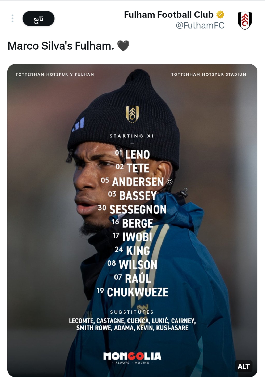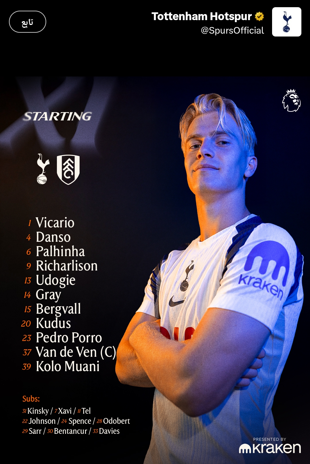 توتنهام وفولهام يكشفان تشكيلتيهما لديربي العاصمة