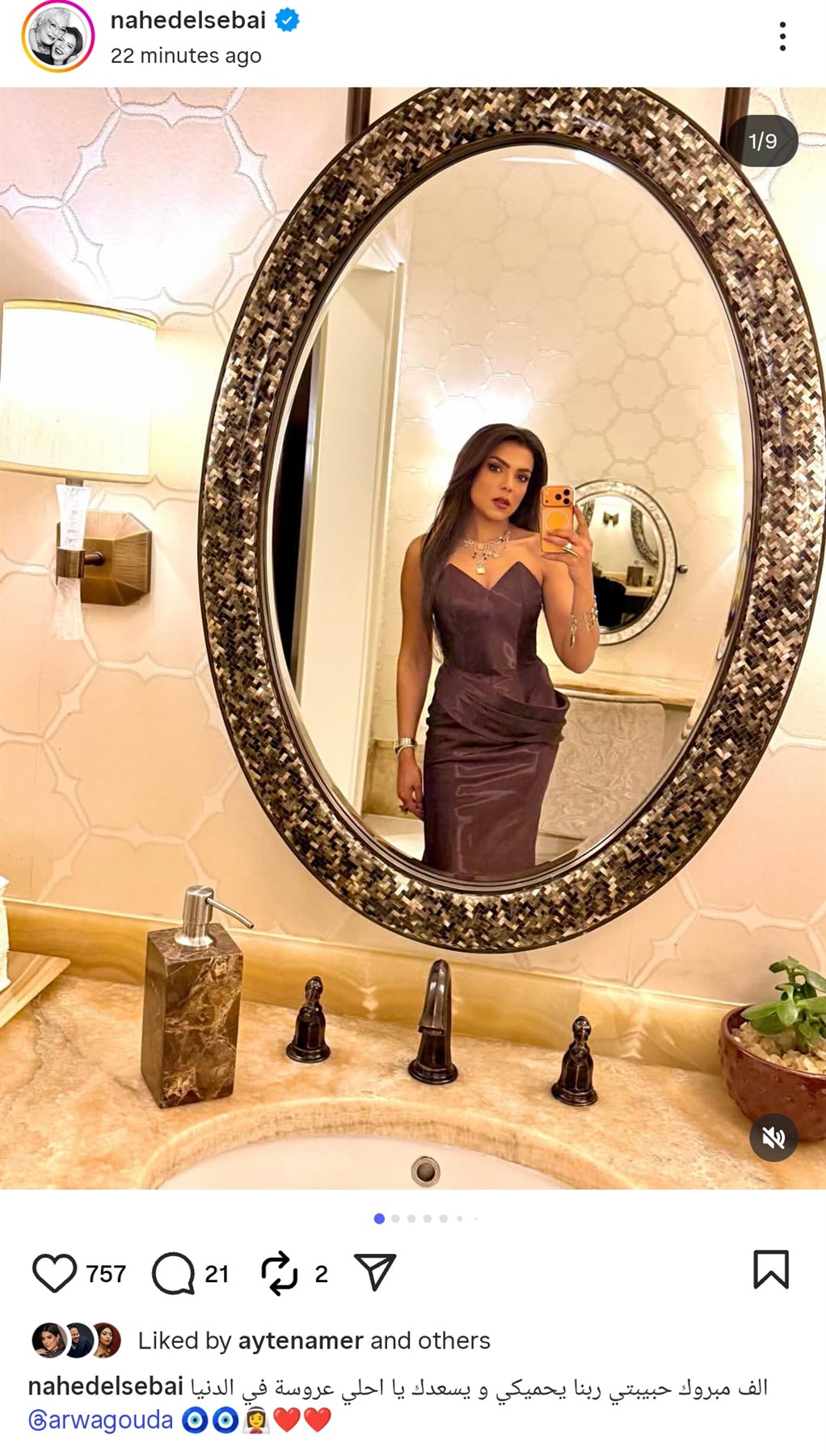 ونشرت ناهد السباعي صورا من حفل الزفاف، وذلك من خلال حسابها الرسمي عبر موقع تبادل الصور والفيديوهات القصيرة إنستجرام، وعلقت: ألف مبروك حبيبتي ربنا يحميكي ويسعدك يا أحلى عروسة في الدنيا.