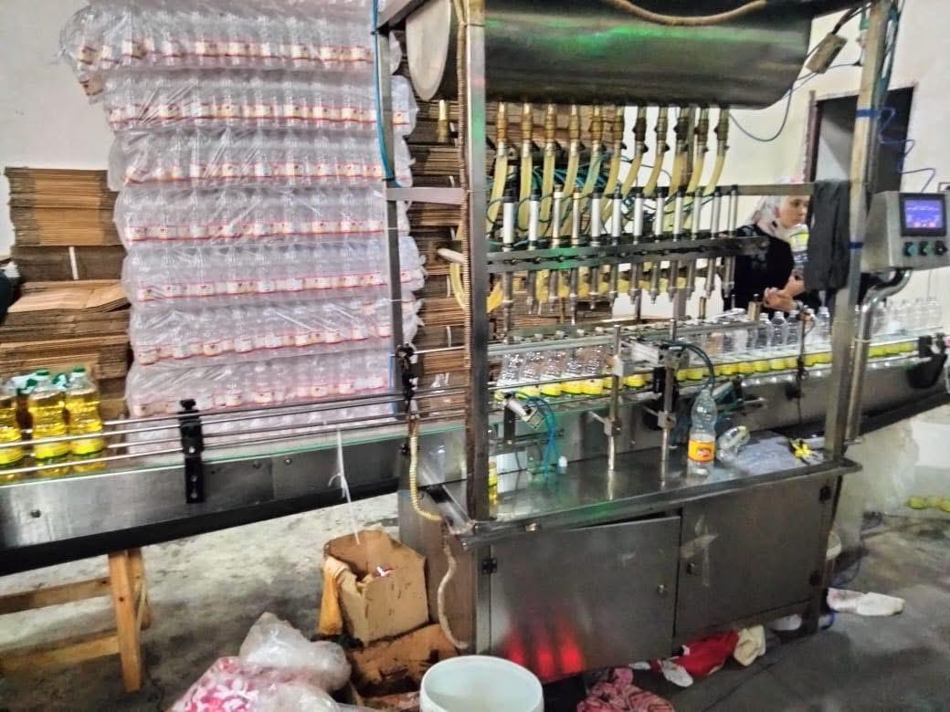 وعلى الفور تم تشكيل حملة موسعة من مفتشي المديرية لاقتحام الموقع وضبط كافة المخالفات، وأسفرت الحملة عن ضبط كميات ضخمة من الزيوت المغشوشة ومجهولة المصدر، شملت 1050 كرتونة زيت تحتوي على 12100 زجاجة مختلفة الأحجام بوزن إجمالي 10 أطنان و235 كيلوجرامًا تحمل بيانات غير صحيحة وعلامات تجارية غير مسجلة، إضافة إلى ضبط تانك حديدي بداخله 7 أطنان من الزيوت المشتبه في صلاحيتها، فضلًا عن 10000 زجاجة فارغة مجهزة للتعبئة تم استخدامها في نشاط المصنع غير المرخَّص.