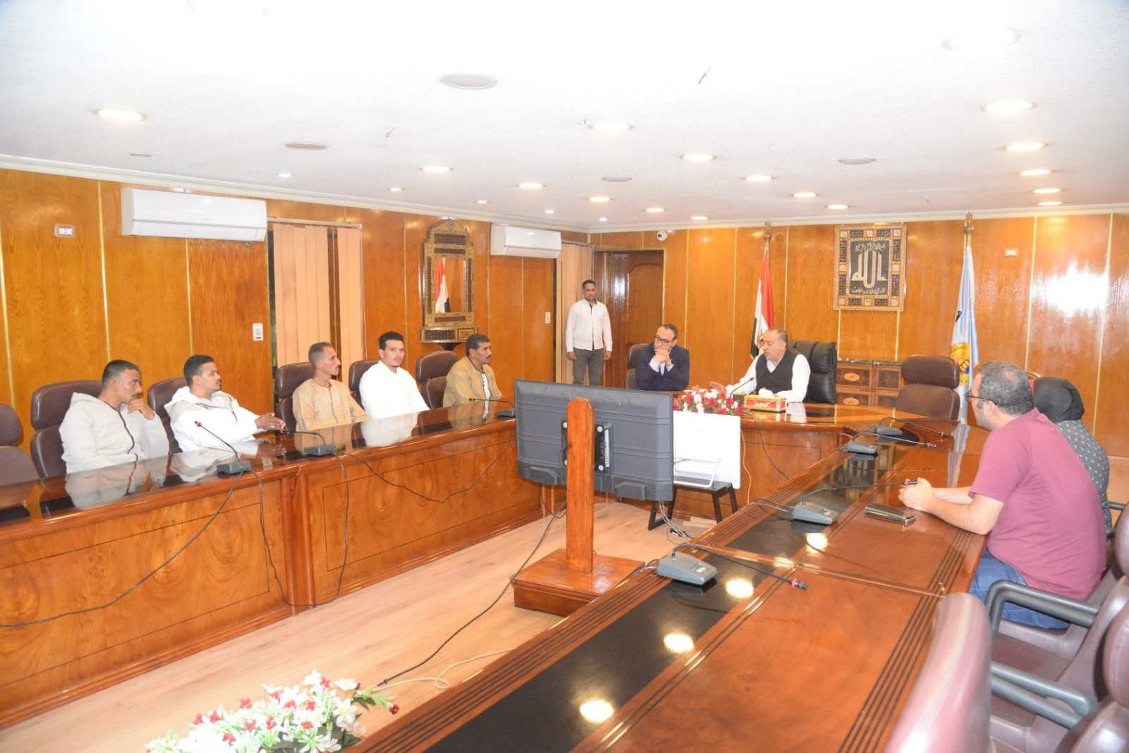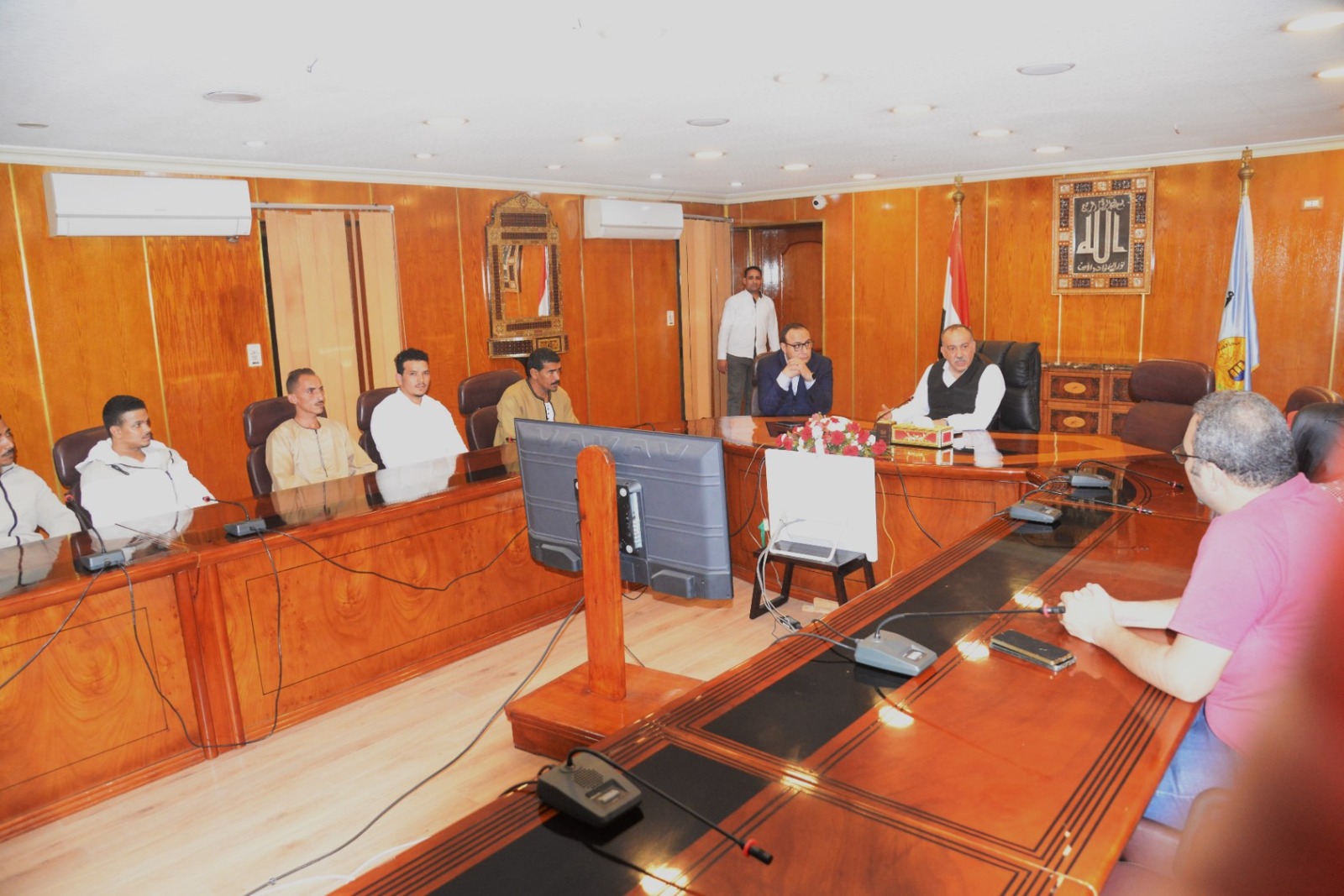 واستقبل المحافظ عددًا من أصحاب كسارات البلاستيك بحضور الدكتور مينا عماد نائب المحافظ وهالة محمود فرغلي رئيس مجلس إدارة جمعية عطاء الخير حيث ناقش أوضاع العاملين في هذا النشاط وسبل توفيق أوضاعهم وتسهيل الإجراءات القانونية اللازمة لاستخراج التراخيص.