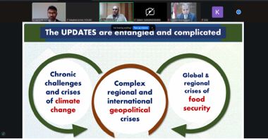 وتضمنت الفعاليات عروضاً تقديمية سلطت الضوء على الأبعاد المختلفة للأزمة، من بينها عرضاً قدمه رئيس مركز معلومات التغيرات المناخية تناول خلاله التغيرات المناخية وتأثيرها المباشر على القطاع الزراعي، كما استعرض مدير معهد بحوث المحاصيل الحقلية، أهم التحديات التي تواجه إنتاج المحاصيل الحقلية وسبل مواجهتها.