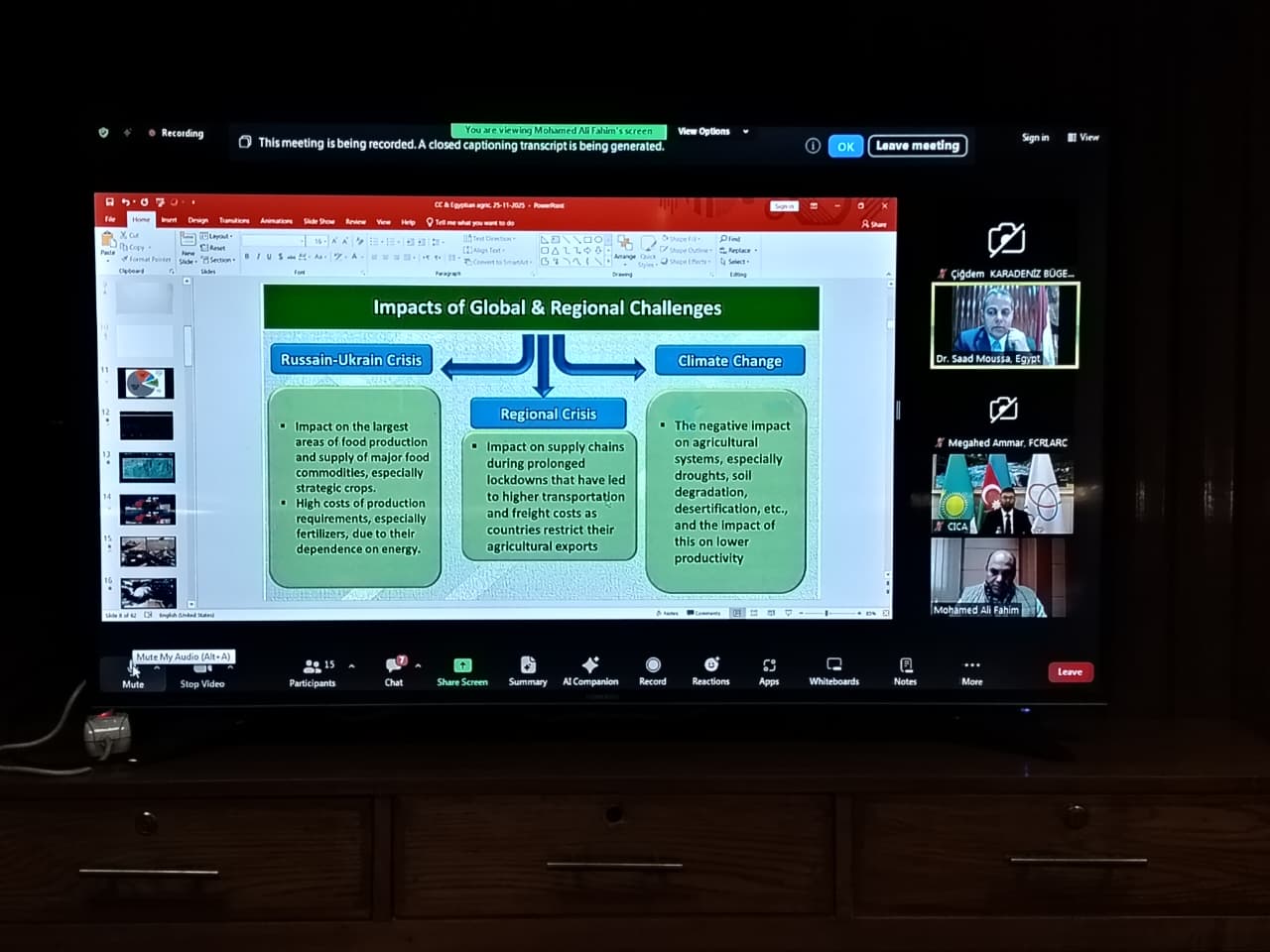 وشهدت ورشة العمل مشاركة واسعة من ممثلي المنظمة سيكا وعدد من الدول الأعضاء، شملت روسيا الاتحادية، تركيا، بنجلاديش، الأردن، أذربيجان، وإيران، بما يعكس الأهمية الإقليمية والدولية، لدعم الأمن الغذائي في مواجهة التغيرات المناخية.