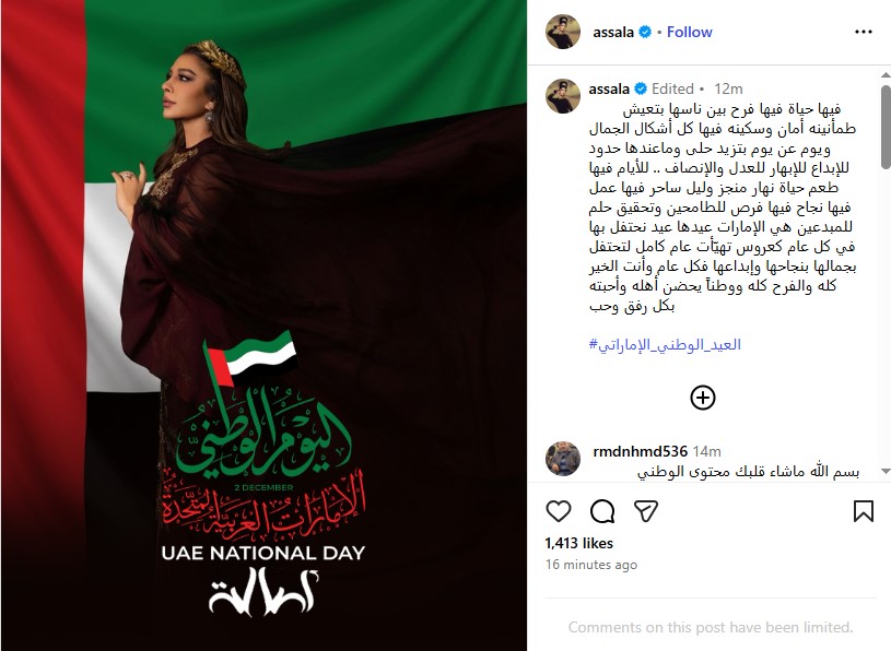 أصالة تحتفي باليوم الوطني الإماراتي برسالة فخر