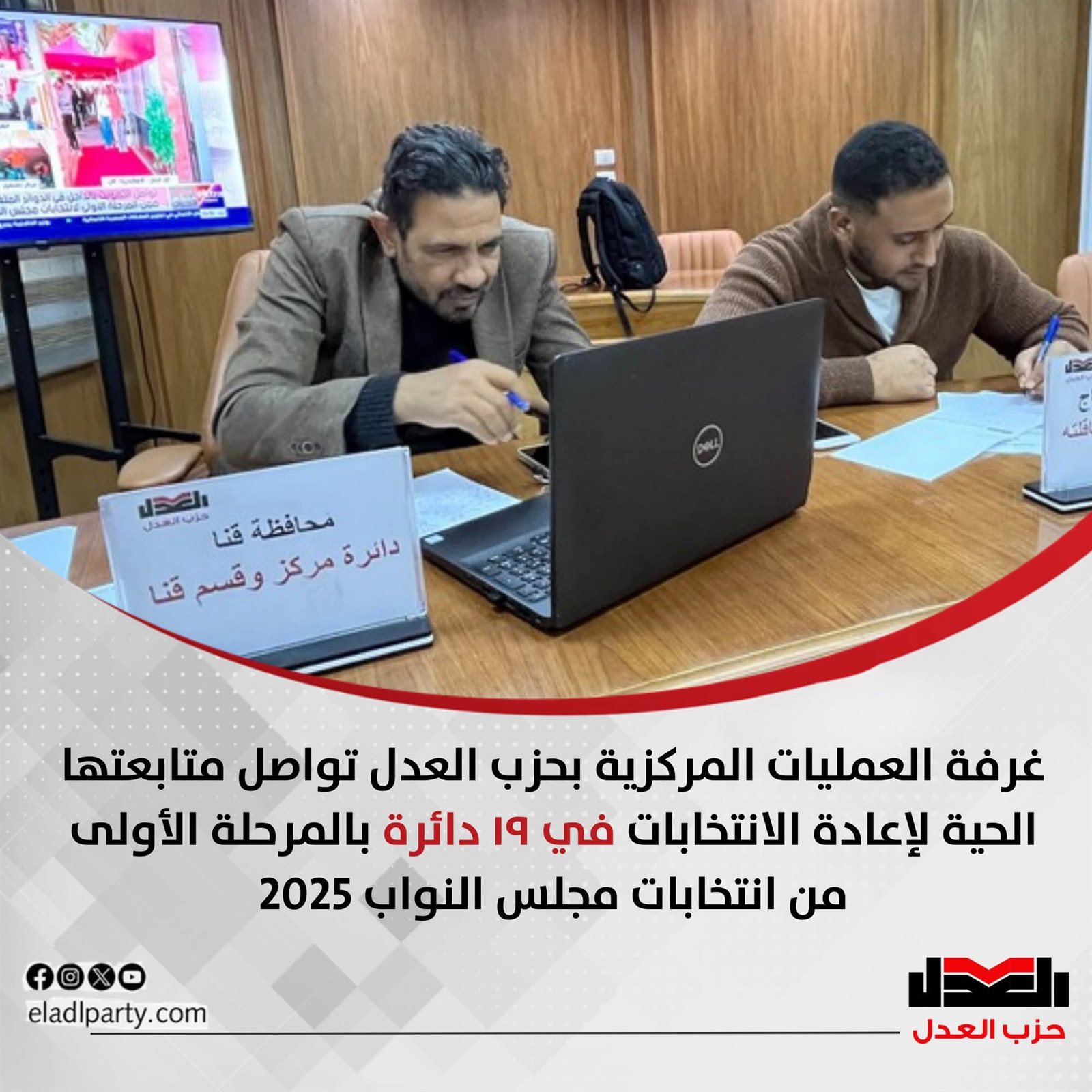 حزب العدل تواصل متابعته الحية لإعادة الانتخابات في 19 دائرة بالمرحلة الأولى