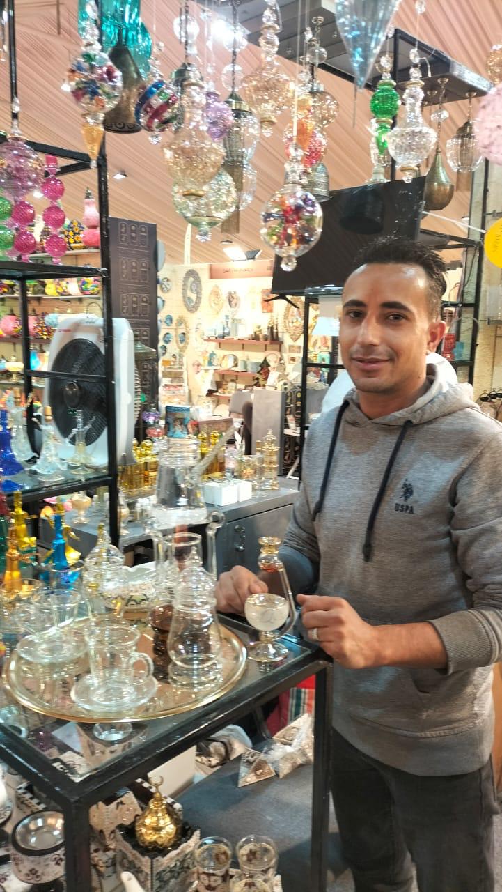 وبالنسبة لمشروعه، أشار عصمت أن خاله صاحب المشروع يعمل في نشاط الزجاج الحراري منذ الثمانينات وينتج مشغولات يدوية أصيلة وتراثية كالمكاحل وأطقم القهوة والشاي وزجاجات العطور والشمعدانات والفوانيس والنجف تحظى برواج في مصر وأوروبا، مضيفا أنه عرف طريق جهاز تنمية المشروعات منذ فترة واستفاد من خدمات المعارض وكذلك دورات التسويق وأيضا حصل على تمويل ساعده في تطوير المشروع.