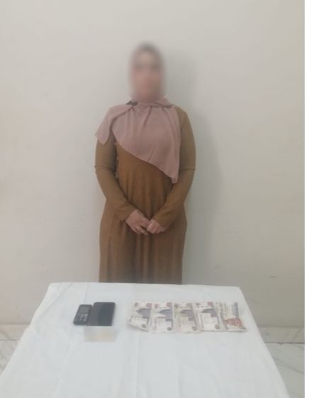 تم التحفظ على السيدة والمضبوطات، واتخاذ الإجراءات القانونية اللازمة بحقها.