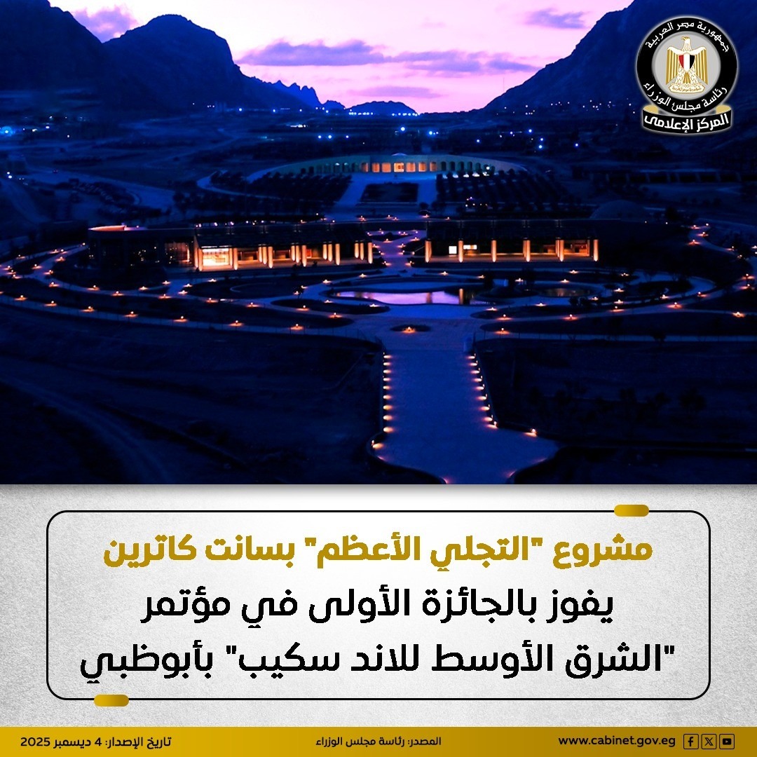فاز مشروع "التجلي الأعظم" بمدينة سانت كاترين بالجائزة الأولى في مؤتمر ومعرض "الشرق الأوسط للاند سكيب ٢٠٢٥"، الذي عقد في مدينة أبوظبي بدولة الإمارات العربية المتحدة، تحت شعار “الطبيعة والمجتمع”.
