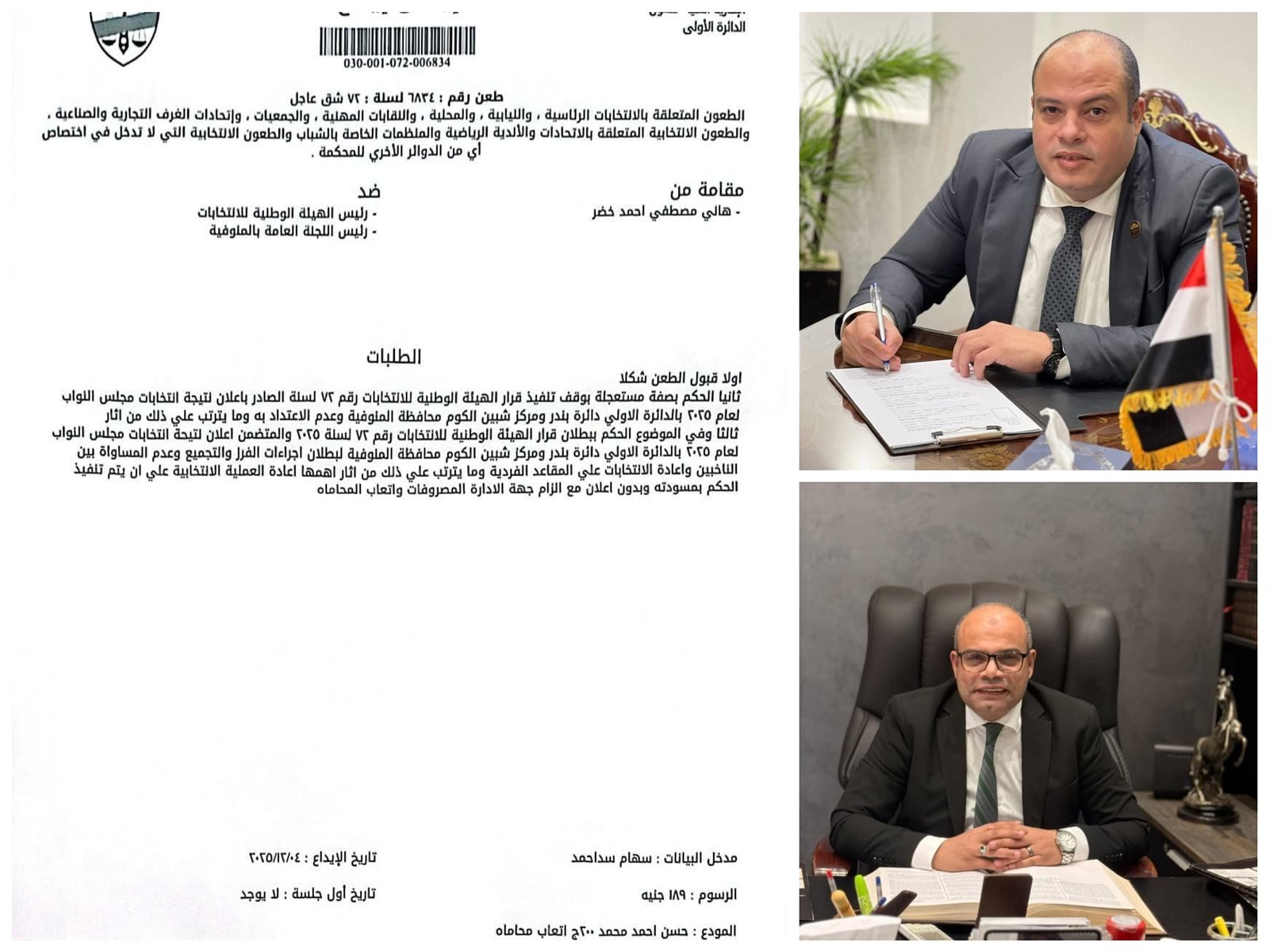 تقدم المرشح هاني خضر بطعن رسمي أمام المحكمة الإدارية العليا طالبًا الحكم ببطلان الانتخابات، بدائرة شبين الكوم، استنادًا إلى ما تم رصده من مخالفات جسيمة بالصوت والصورة، تم تقديمها كاملة إلى المحكمة الموقرة.