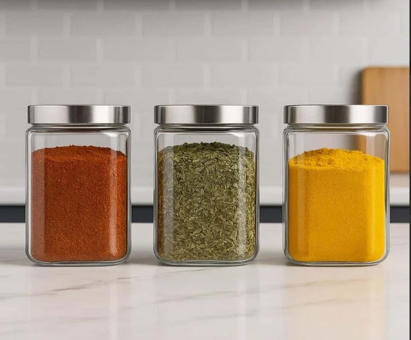 7-من أفضل العُلب لحفظ البهارات والتوابل هي عُلب الإستانلس أو الزجاج، لأنها تحافظ على نكهة ورائحة البهارات كما أنها تكون محكمة الإغلاق.