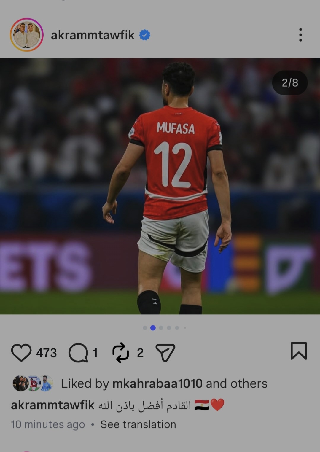 وجه أكرم توفيق، لاعب نادي الشمال القطري ومنتخب مصر الثاني، رسالة دعم لجماهير المنتخب عبر حسابه الشخصي بموقع إنستجرام، وكتب: "القادم أفضل بإذن الله".