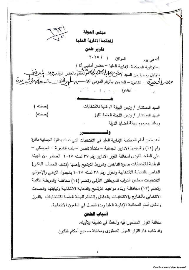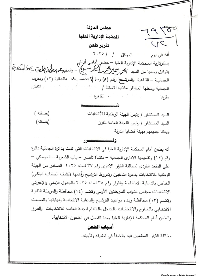 ويأتي هذا الطعن في إطار حرصه على ضمان شفافية وموضوعية الانتخابات، ومطالبة الجهات القضائية المختصة بالتحقيق في الملابسات واتخاذ الإجراءات القانونية اللازمة.