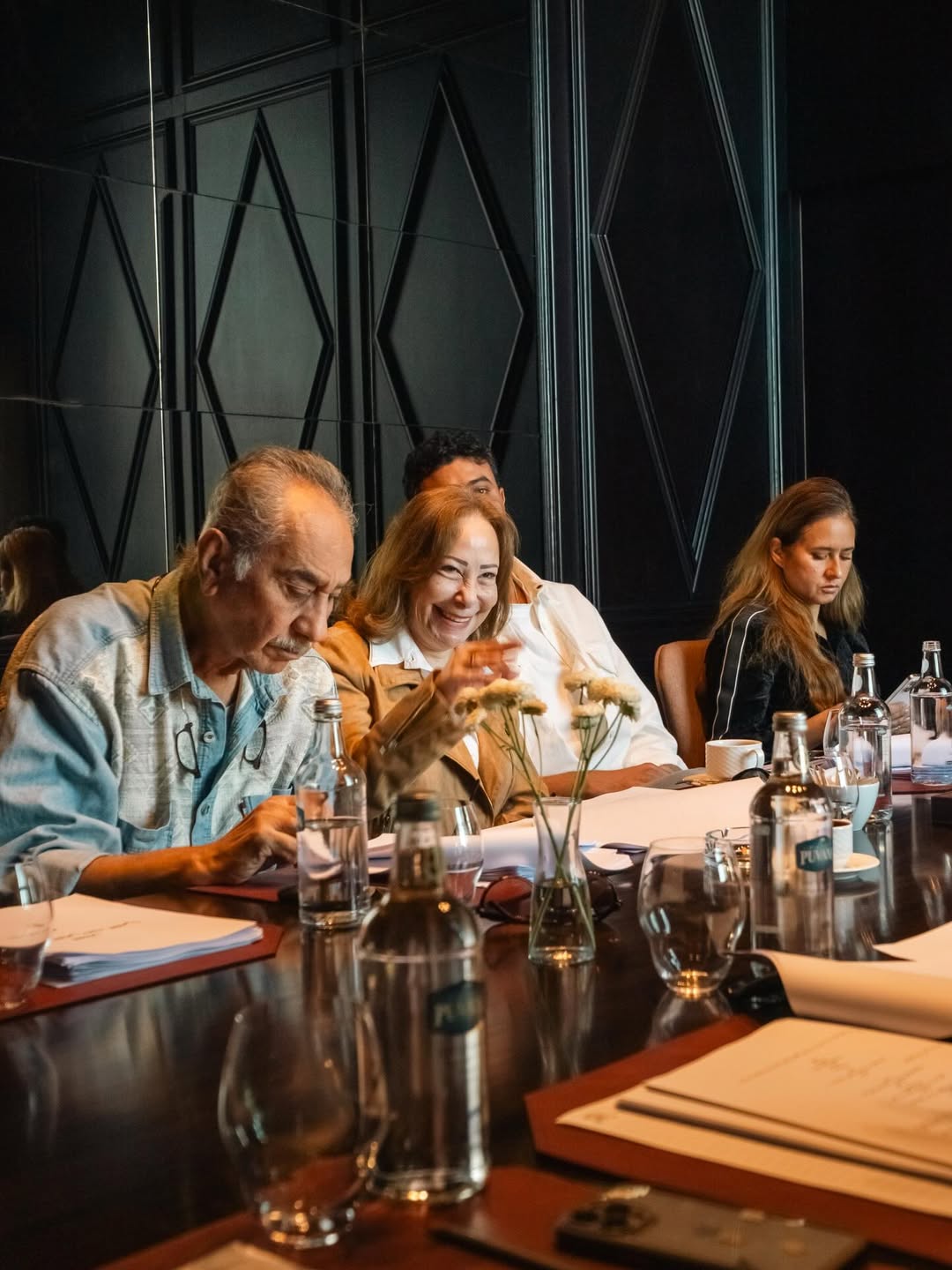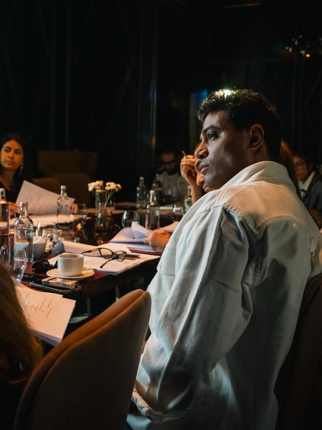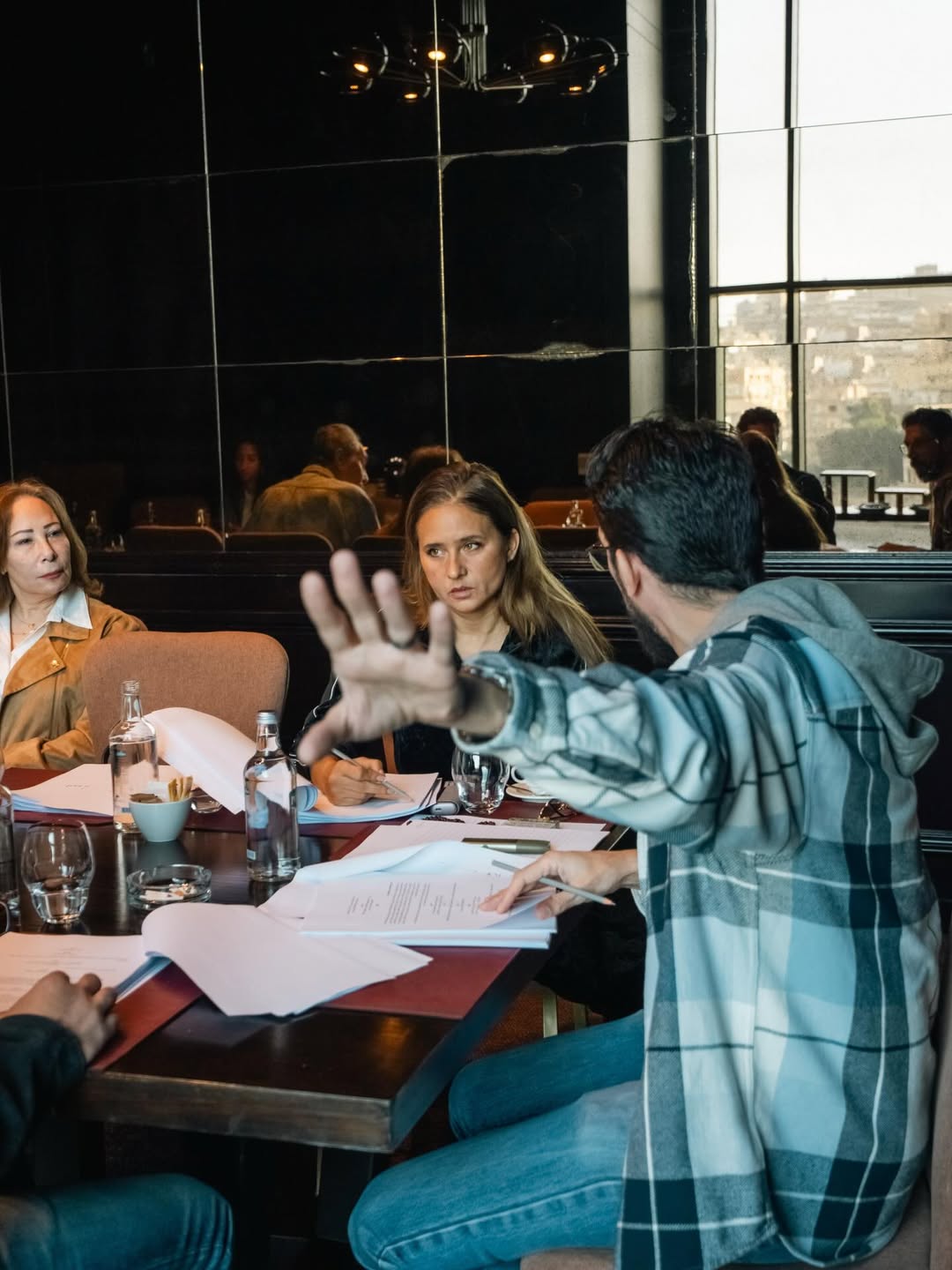 ونشرت الشركة المنتجة مجموعة صور من كواليس البروفات وعلقت عليها: فريق عمل على قد الحب استنونا في رمضان 2026.