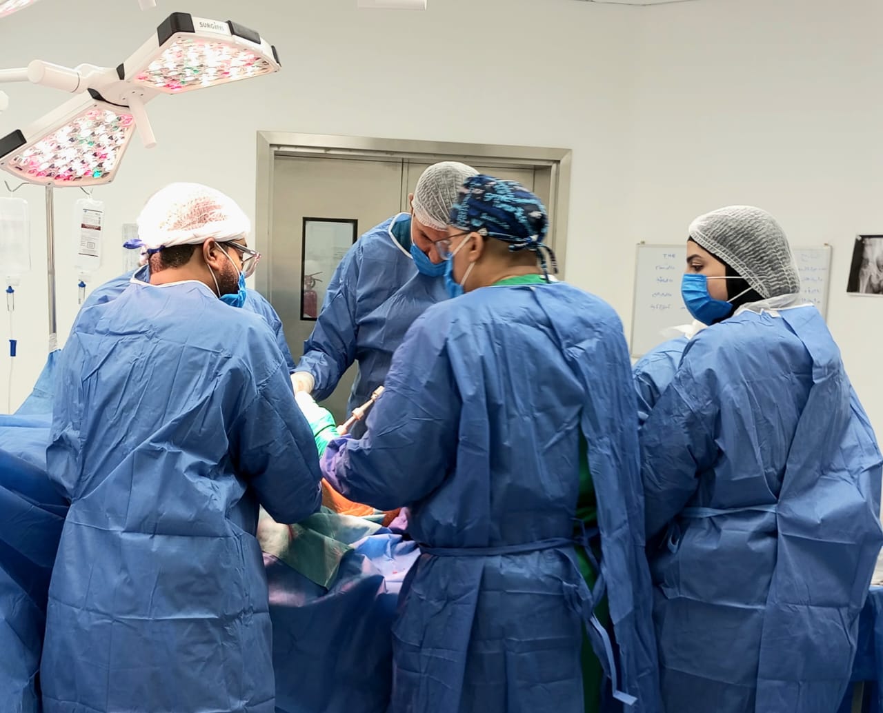 وأُجريت العملية في مستشفى النيل التخصصي على أيدي فريق طبي متخصص ضم: الدكتور سامي إبراهيم عبد العزيز، استشاري جراحة العظام، الدكتور الحسن عبدالقادر، رئيس قسم العظام، والدكتور محمد سيد سيد كامل، طبيب مقيم جراحة العظام. وفي مستشفى دراو المركزي، ضم: الأستاذ الدكتور محمد سالمان، أستاذ مساعد جراحة العظام والمفاصل، الدكتور محمد عطية، أخصائي جراحة العظام، والدكتور علاء جامع، أخصائي جراحة العظام.