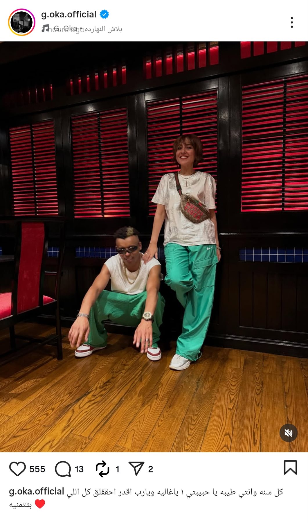 وشارك أوكا جمهوره صورة تجمعه بزوجته ووجه لها بعض الكلمات الرومانسية، وذلك من خلال حسابها الرسمي عبر موقع تبادل الصور والفيديوهات القصيرة إنستجرام، وكتب: كل سنة وأنتي طيبة يا حبيبتي يا غالية ويارب أقدر أحققلك كل اللي بتتمنية.