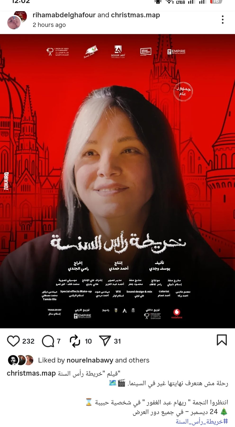 أضافت: انتظروا النجمة ريهام عبد الغفور في شخصية حبيبة.. 24 ديسمبر في جميع دور العرض.