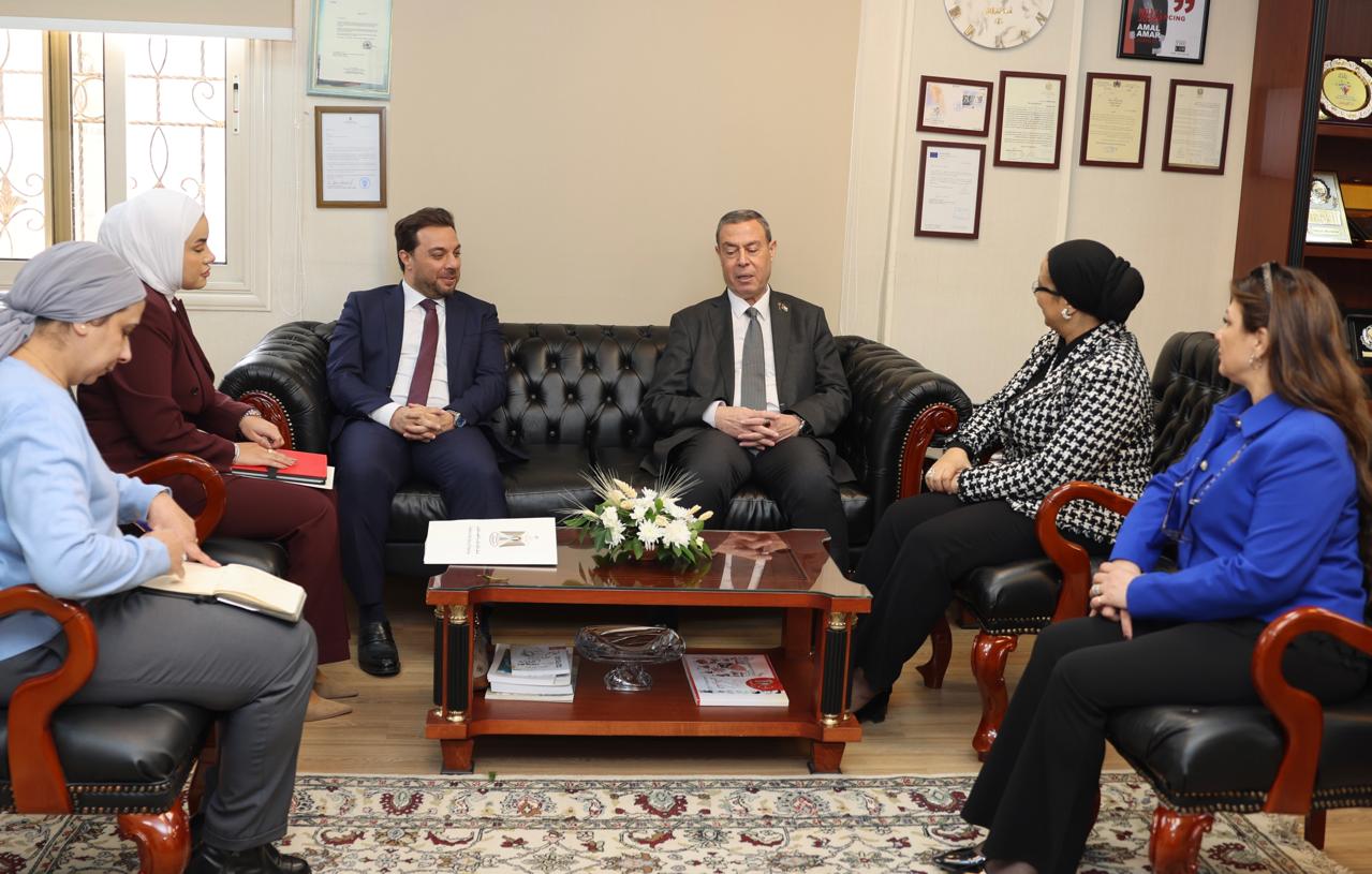 وشهد اللقاء حضور كل من المهندسة جيهان توفيق رئيس الإدارة المركزية لشؤون مكتب الرئاسة، والأستاذة شيرويت إبراهيم مدير عام التعاون الدولي، والأستاذة داليا سعيد مدير عام السكرتارية التنفيذية ومنسقة مشروعي التثقيف المالي وريادة الأعمال، بالإضافة إلى الأستاذة منى بغدادي ممثلة إدارة تنمية مهارات المرأة، والأستاذة آلاء الشاعر من المكتب الفني.