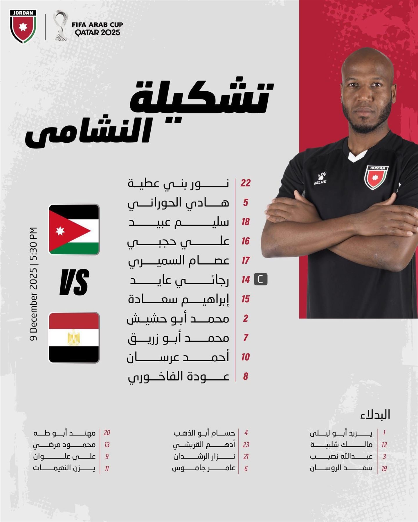 السلامي يكشف تشكيل النشامى قبل مواجهة مصر في كأس العرب