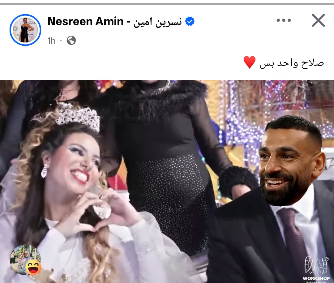 ونشرت نسرين أمين صورة طريفة تجمعها بـ محمد صلاح، من خلال حسابها الرسمي عبر موقع التواصل الاجتماعي فيسبوك، وكتبت: صلاح واحد بس.