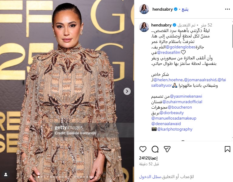 وشاركت هند صبري جمهورها صورا أثناء التكريم، من خلال حسابها الرسمي عبر موقع تبادل الصور والفيديوهات القصيرة إنستجرام، وكتبت:ليلةٌ ذكّرتني بأهمية سرد القصص.. ممتنٌ لكل لحظةٍ أوصلتني إلى هنا.
