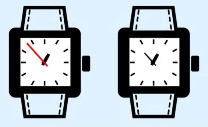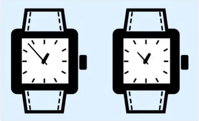 تحتوي كلتا ساعتي اليد على ذراع للدقائق وذراع للثواني لكن الساعة اليسرى لها ذراع دقائق طويلة جدًا، لذا لا يمكنها المرور بسهولة حول كل مراحل الساعة أثناء تحركها إذاً، فالساعة اليسرى هي الساعة المزيفة، والساعة اليمنى هي الساعة الحقيقية.