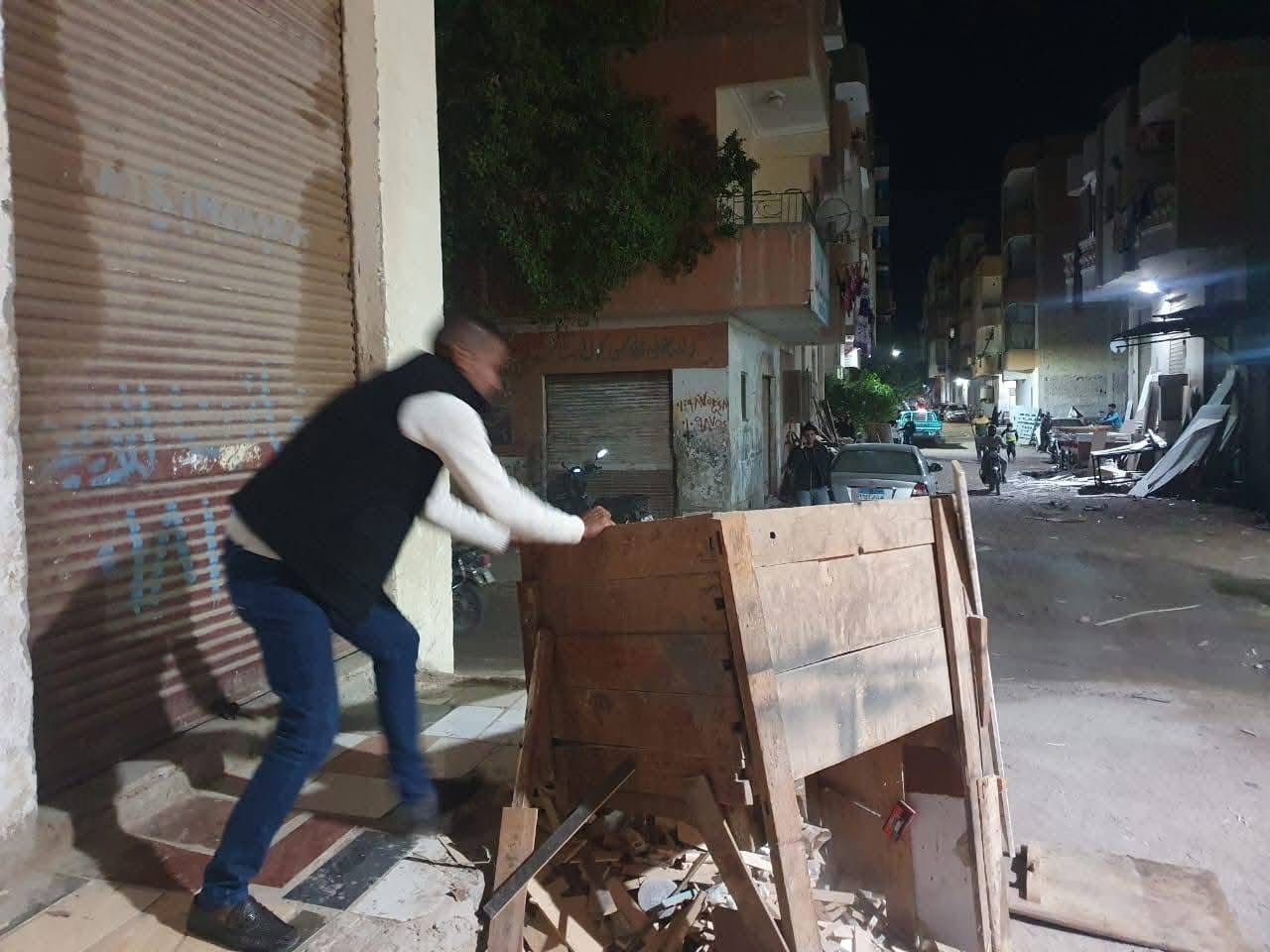 استمرار حملات رفع الاشغالات والتعديات والتأكد من الغلق في المواعيد المحددة للورش الفنية بحي شمال