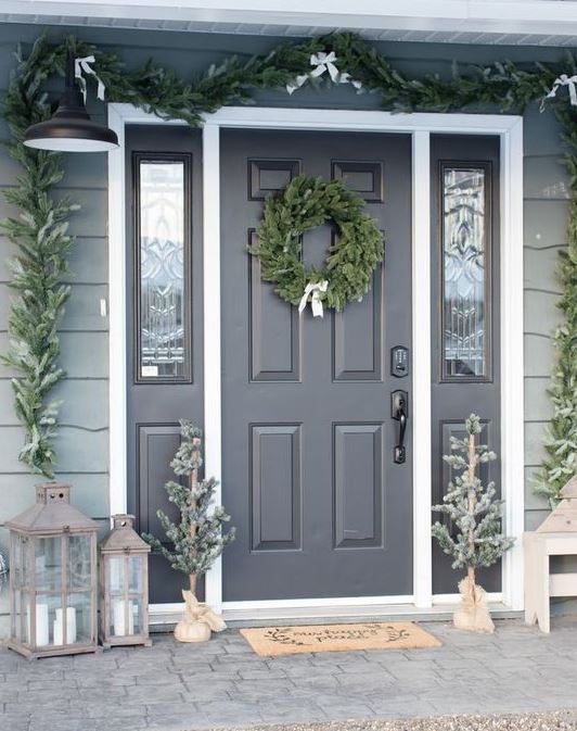 5- وضع أصيص الزرع والنباتات أو حتى استخدام شجرة عيد ميلاد صغيرة الحجم أمام الباب ستعطي انطباعًا مبهجًا للغاية.