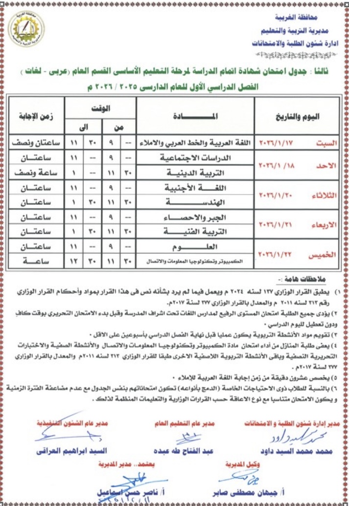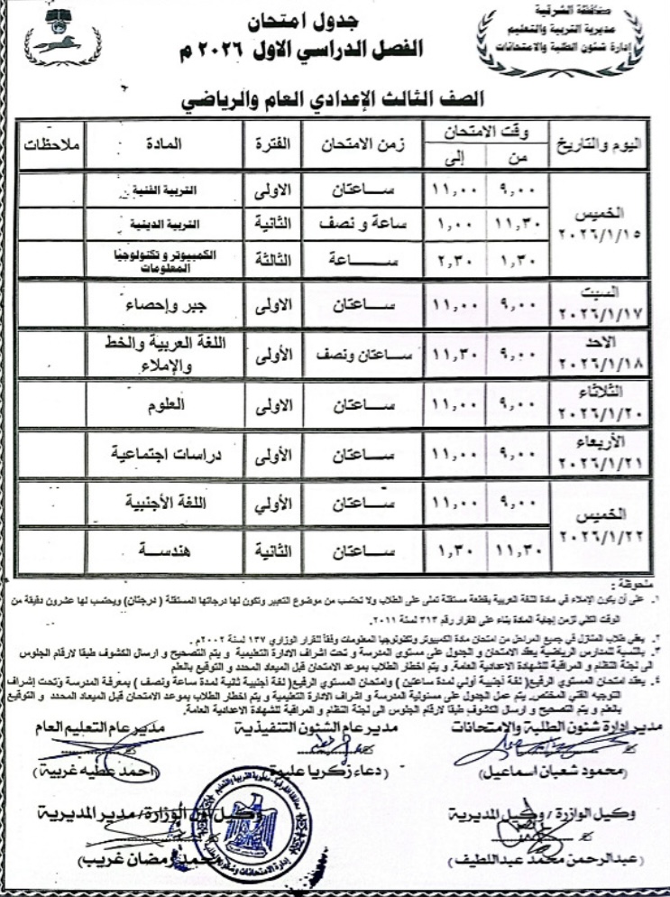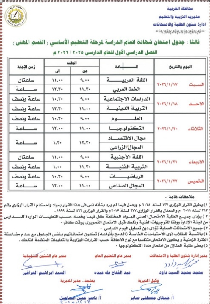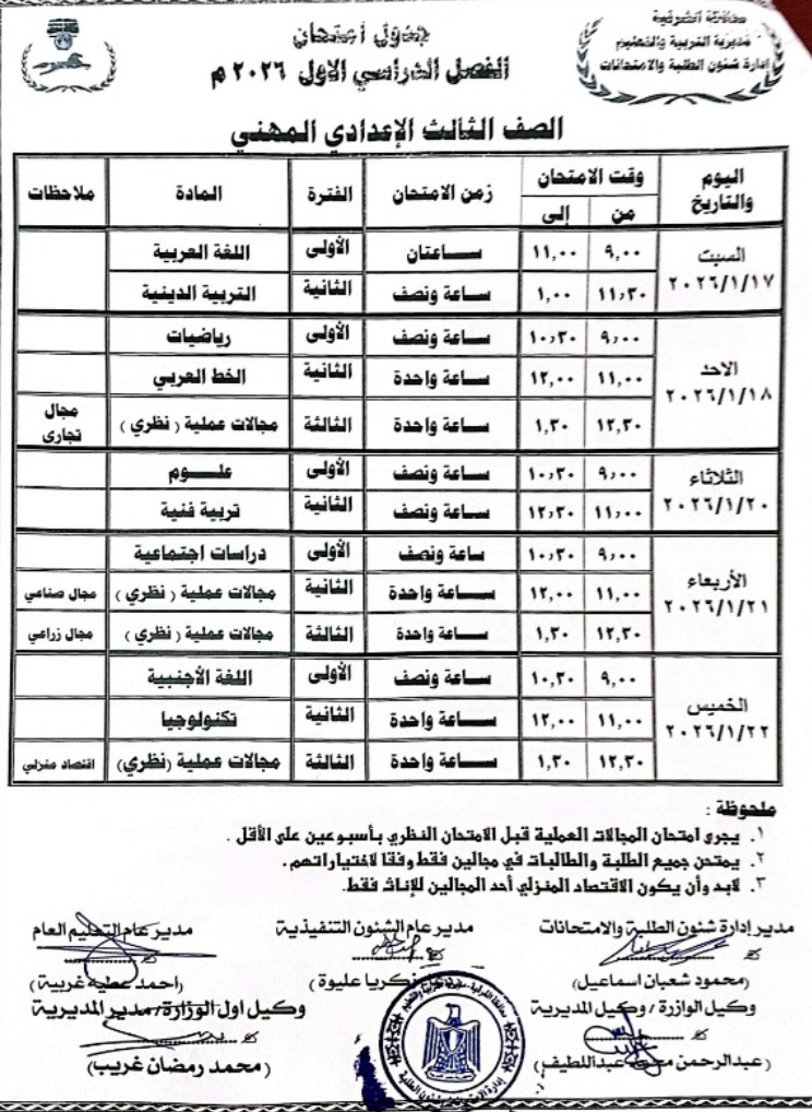 جدول امتحانات الشهادة الإعدادية 2026.. المواعيد الرسمية وتنبيهات مهمة للطلاب وأولياء الأمور
