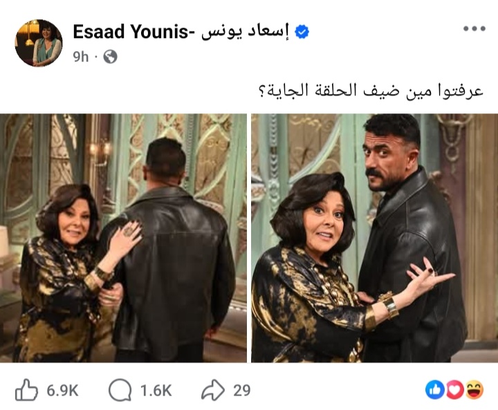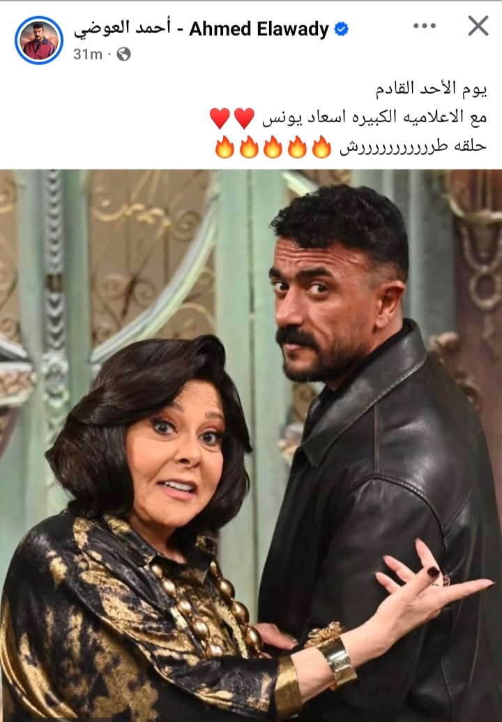 وروج العوضي للحلقة من خلال صفحته الرسمية " فيس بوك" ونشر صورة تجمعه بالفنانة إسعاد يونس وعلق عليها " يوم الأحد القادم مع الاعلاميه الكبيره اسعاد يونس".