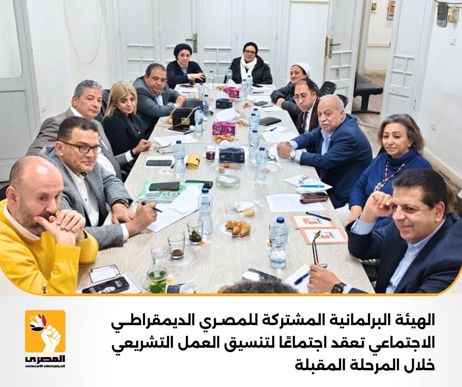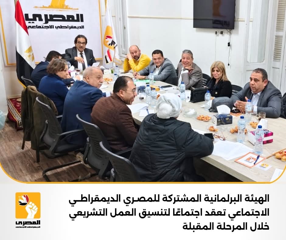 اجتمعت الهيئة البرلمانية المشتركة للحزب المصري الديمقراطي الاجتماعي، والتي تضم أعضاء الحزب بمجلسي الشيوخ والنواب المنتخبين، وذلك في إطار تنسيق العمل البرلماني وترتيب أولويات الحزب التشريعية والرقابية خلال المرحلة المقبلة.