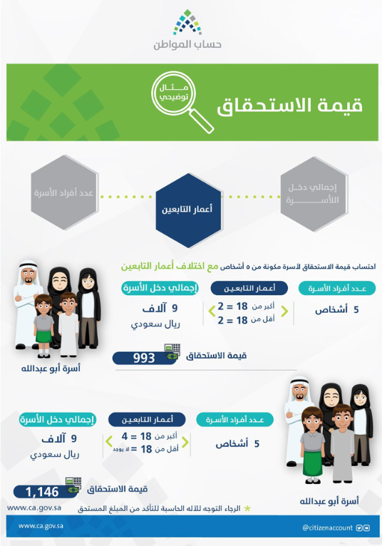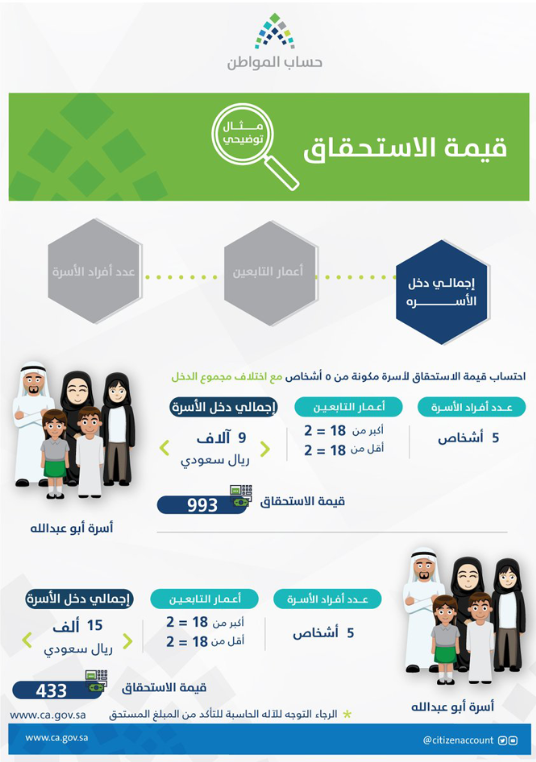 حاسبة حساب المواطن الجديدة حسب عدد الاسرة - تاريخ اليوم