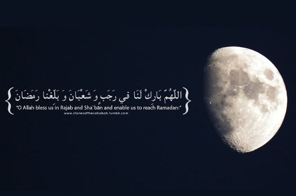 - «اللهمَّ بارِكْ لَنا فِي رَجَبٍ وَ شَعْبانَ، وَ بَلِّغْنا شَهْرَ رَمَضانَ، وَ أَعِنَّا عَلَى الصِّيامِ وَ الْقِيامِ، وَ حِفْظِ اللِّسانِ، وَ غَضِّ الْبَصَرِ، وَ لا تَجْعَلْ حَظِّنا مِنْهُ الْجُوعَ وَ الْعَطَشَ».