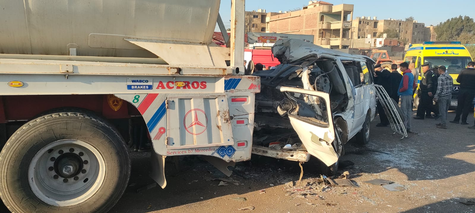 وبالفحص والمعاينة، تبين اصطدام سيارة نقل «تريلا» بسيارة ميكروباص أجرة قادمة من محافظة المنوفية، ما أسفر عن وقوع الحادث.