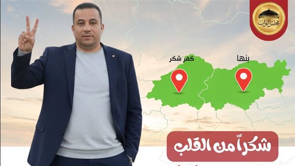 كما وجّه النائب الفائز رسالة تقدير إلى أهالي دائرة بنها وكفر شكر، مؤكّدًا أنه سيكون صوتهم المعبر عن طموحاتهم واحتياجاتهم داخل مجلس النواب وخارجه، من خلال العمل الجاد على تلبية مطالبهم، والمساهمة في سرعة تنفيذ المشروعات التنموية بالمحافظة، والمشاركة الفاعلة في مناقشة وإقرار القوانين التي تدعم استقرار الدولة وتحقق التنمية الشاملة خلال المرحلة المقبلة.