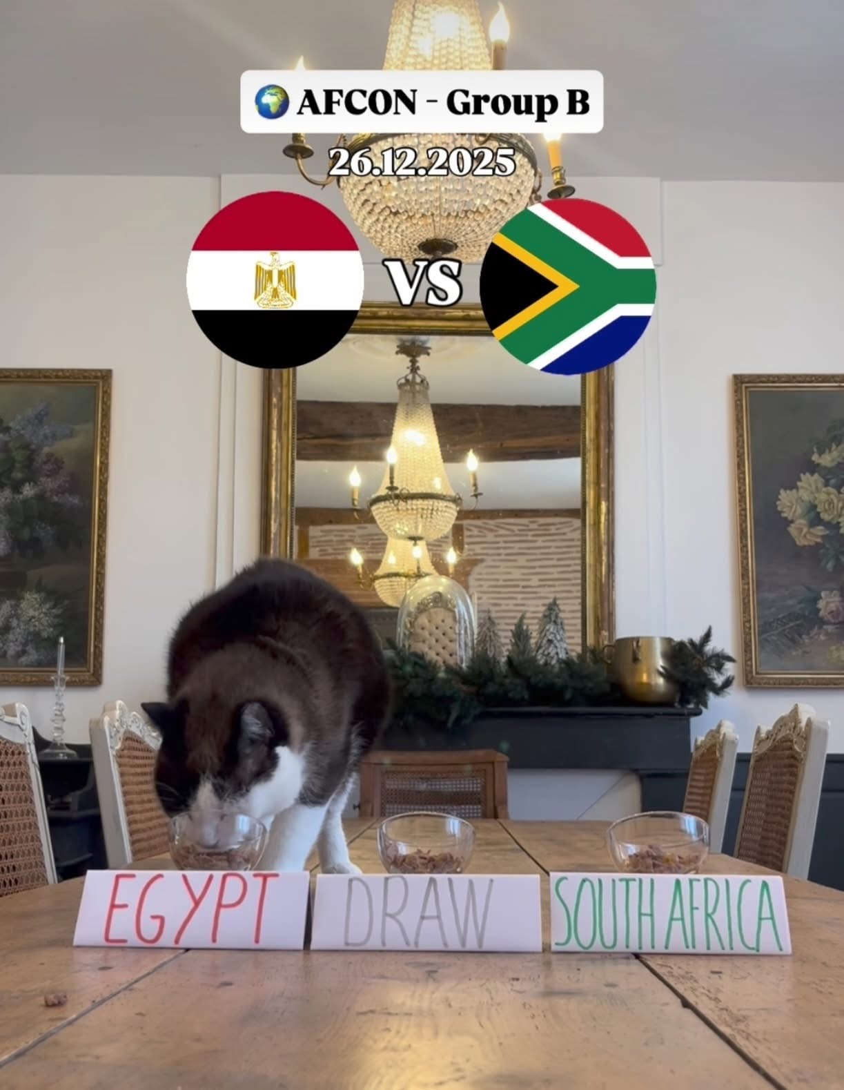 ونشر الحساب الرسمي للقط على إنستجرام فيديو يظهر فيه ثلاثة أوعية للطعام مكتوب عليها: مصر، جنوب إفريقيا، والتعادل، ليختار القط وعاء منتخب مصر، في إشارة واضحة إلى فوز الفراعنة المتوقع.