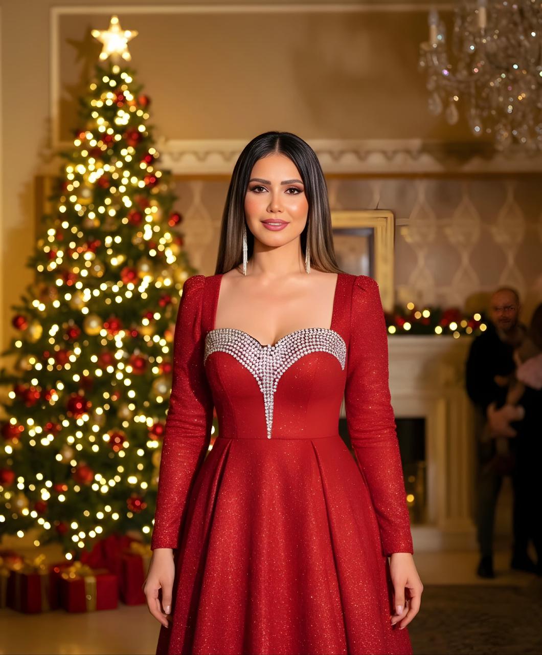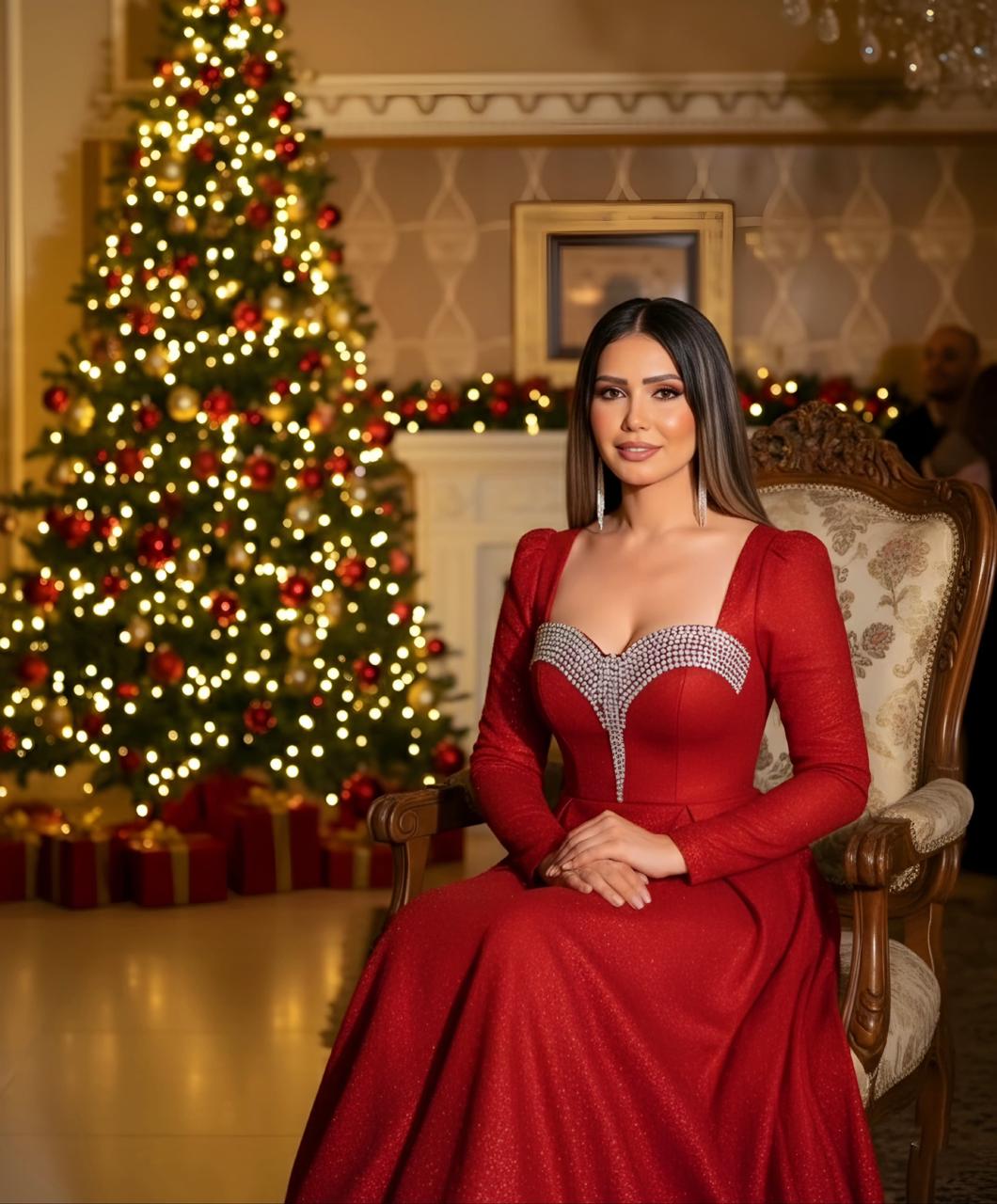 الفنانة ايناس عز الدين تحتفل بشجرة الكريسماس بإطلالة أنيقة .. صور