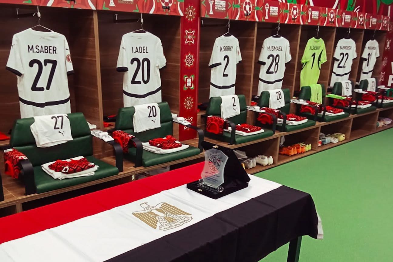 شاهد غرفة ملابس منتخب مصر بملعب أدرار قبل مواجهة أنجولا (صور)