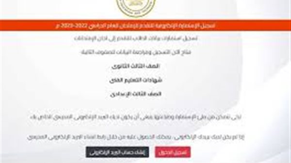 ونبهت الوزارة إلى ضرورة الاحتفاظ بالبريد الإلكتروني وكلمة المرور، حيث يتم استخدامهما في الخطوات التالية الخاصة بتسجيل الاستمارة.