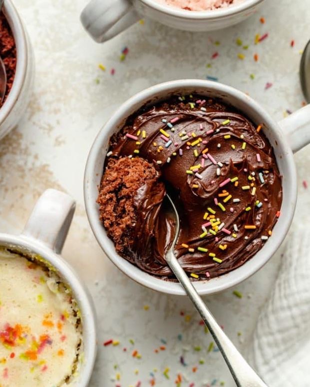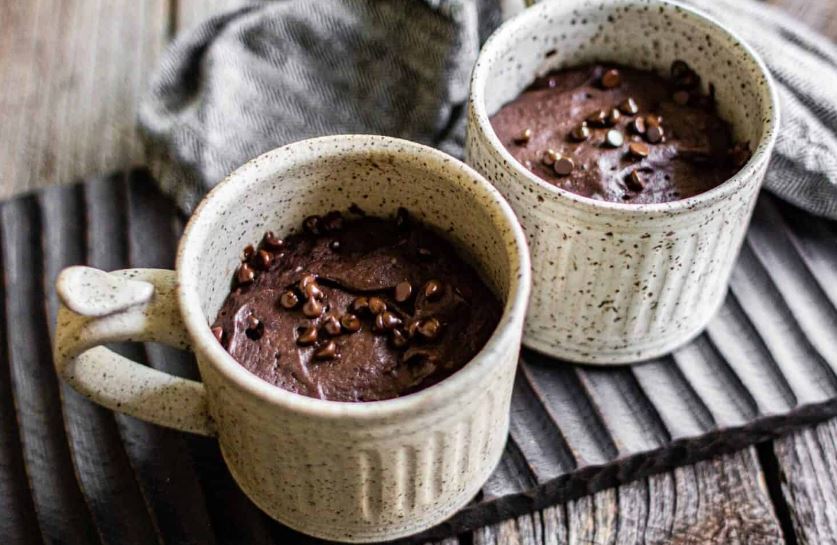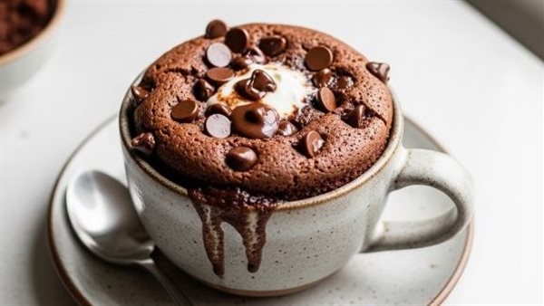 اخلطي ملعقة كبيرة من الدقيق، ملعقة صغيرة من الكاكاو، ملعقة صغيرة من السكر، وربع ملعقة صغيرة من البيكنج بودر في كوب.