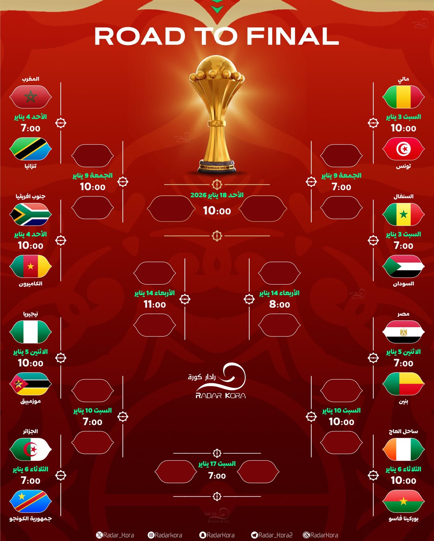 ومع نهاية مرحلة المجموعات، تحددت مواجهات دور الـ16، التي تشهد صدامات قوية ومبكرة بين عدد من كبار القارة السمراء، وجاءت المواعيد على النحو التالي: