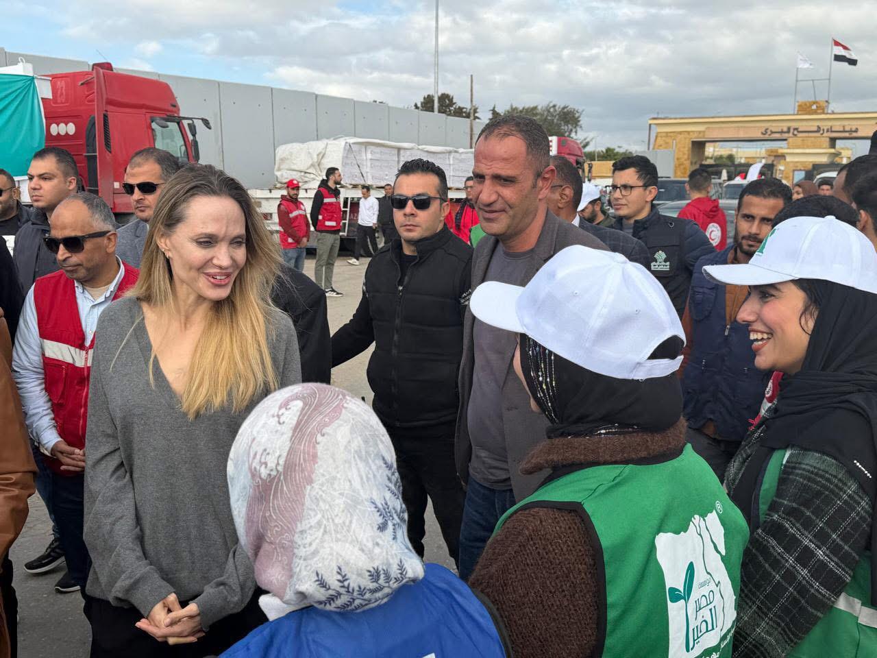 زارت النجمة الأمريكية أنجلينا جولي، مبعوثة الأمم المتحدة السابقة لشؤون اللاجئين، معبر رفح من الجانب المصري، حيث تابعت جهود الدعم الإنساني والتضامن مع الشعب الفلسطيني، كما تفقدت عدداً من المصابين الفلسطينيين.