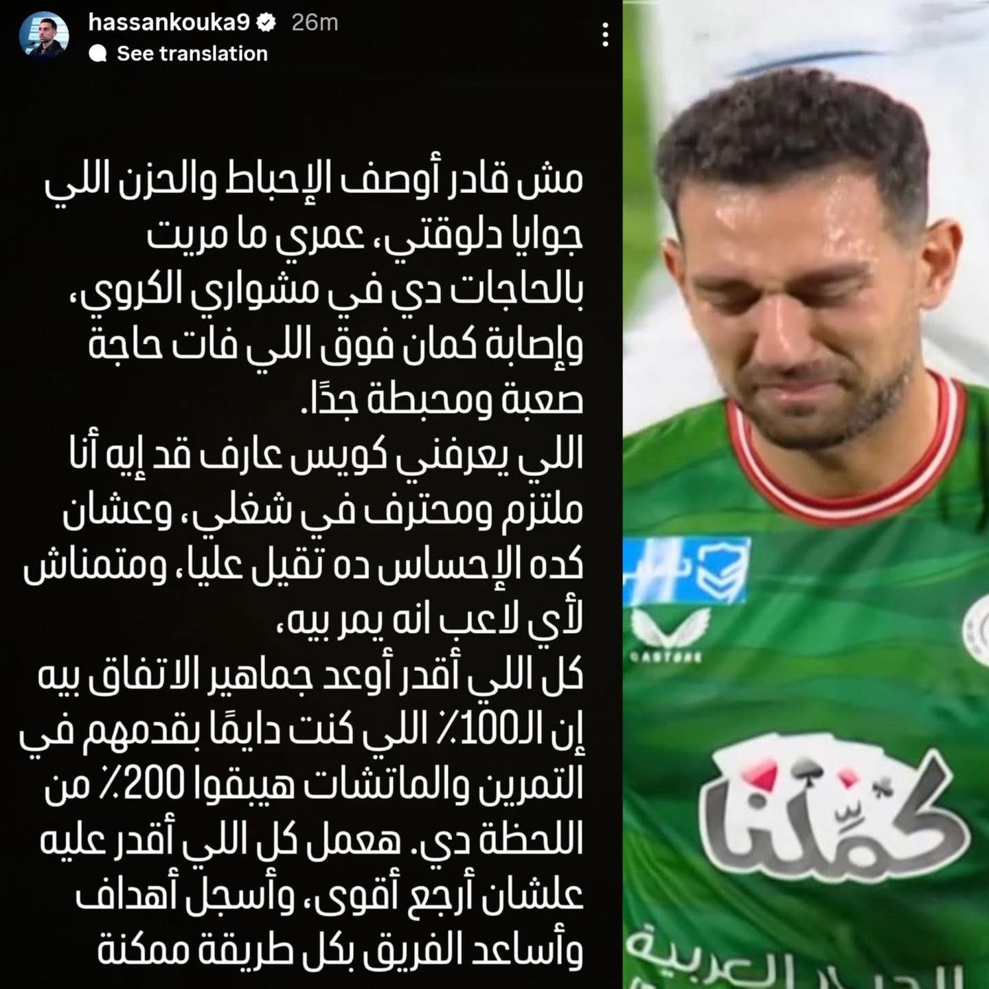 وعلق كوكا عبر حسابه الرسمي على موقع التواصل الاجتماعي إنستجرام قائلاً: "مش قادر اوصف الإحباط والحزن بداخلي حاليا، لم أمر بمثل تلك الأمور خلال مسيرتي الكروية وأيضا إصابة مع كل ما سبق شيء صعب ومحبط".