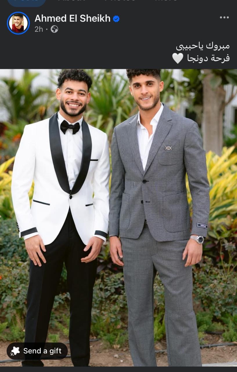 وشارك الحفل زميله أحمد الشيخ، لاعب الأهلي السابق، الذي نشر صورة تجمعه مع دونجا وعلق عليها: "مبروك يا حبيبي.. فرحة دونجا".