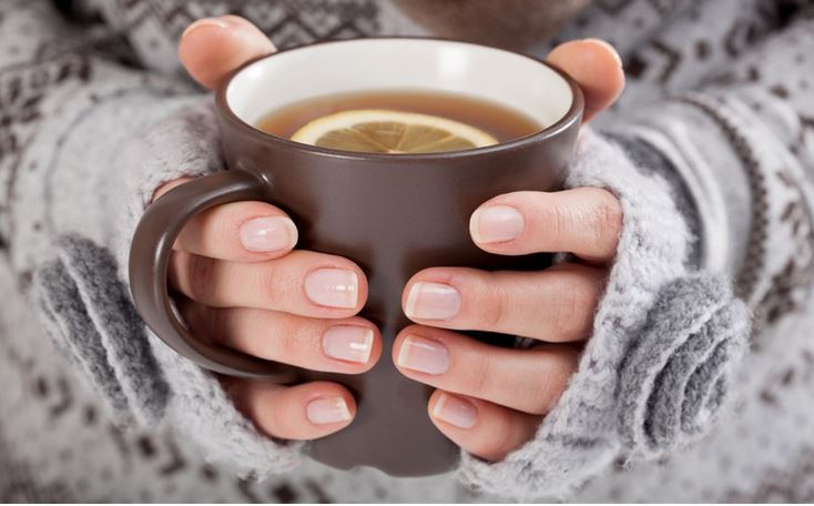 ينصح بحمل كوب دافئ لتدفئة أصابع اليد بشكل طبيعي، كما يمكن تناول مشروبات ساخنة وصحية مثل الشاي الأخضر الغني بمضادات الأكسدة، أو مشروب القرفة الذي يساعد على رفع درجة حرارة الجسم.