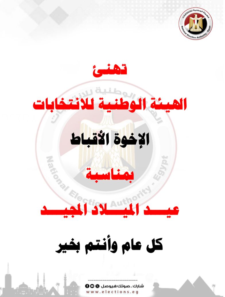 الهيئة الوطنية للانتخابات تهنئ الإخوة الأقباط بعيد الميلاد المجيد