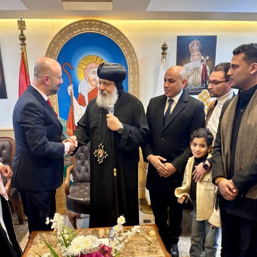 استقبل نيافة الأنبا ميخائيل، أسقف حلوان والمعصرة، وفدًا من الحزب المصري الديمقراطي الاجتماعي لتقديم التهاني بمناسبة عيد الميلاد المجيد، بحضور النائب باسم كامل، الأمين العام للحزب وعضو مجلس الشيوخ.