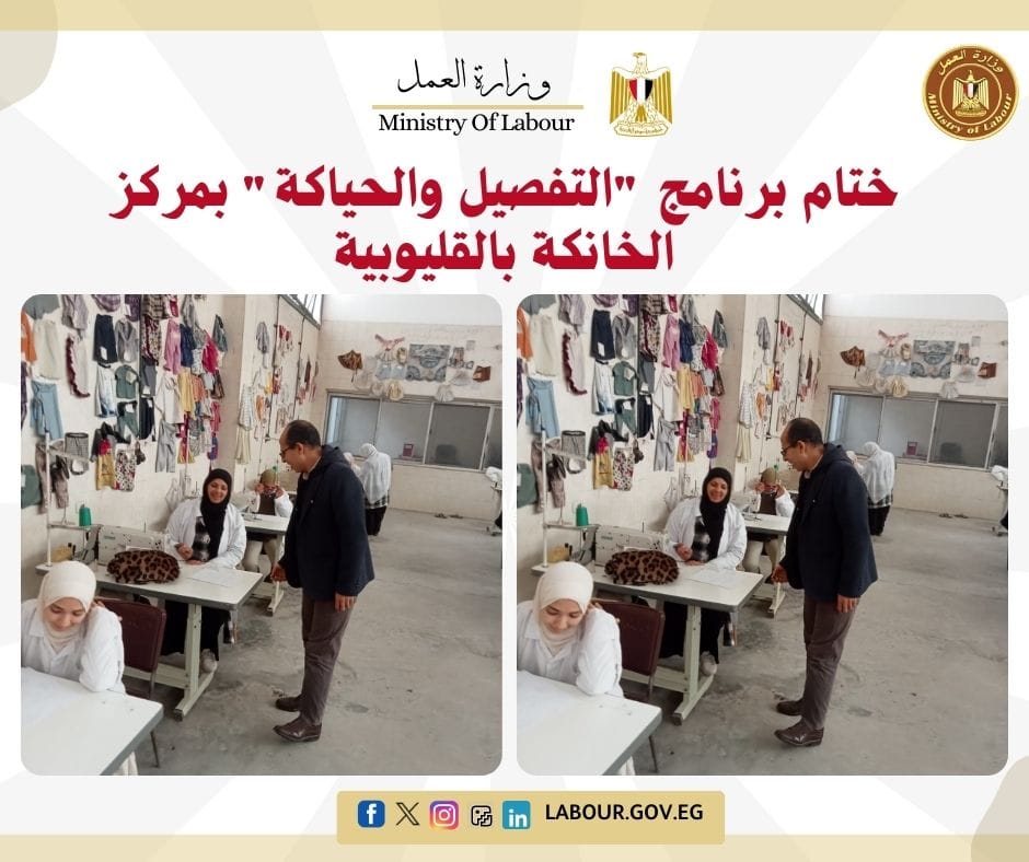 شهد فوزي صابر، مدير مديرية العمل بالقليوبية، ختام البرنامج التدريبي على مهنة "التفصيل والحياكة" لـ 14 متدرباً بمركز تدريب الخانكة. وأوضح أن التدريب استمر لمدة 150 ساعة معتمدة، بهدف تأهيل الشباب والفتيات فنياً للحصول على فرص عمل لائقة أو بدء مشروعاتهم الخاصة مجاناً.