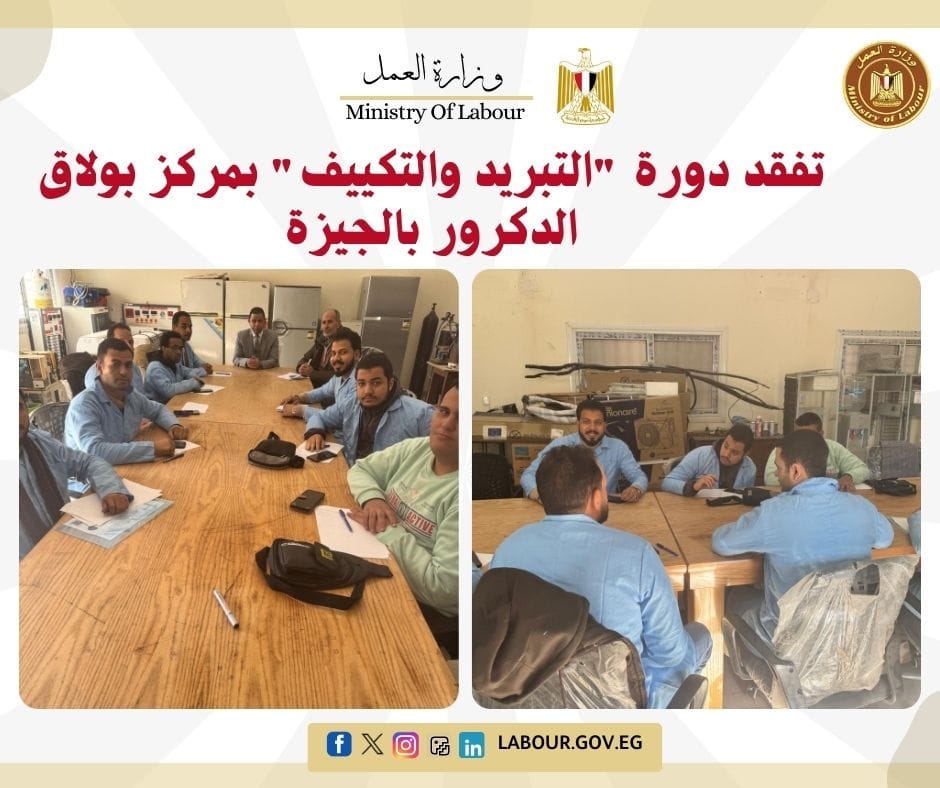 تابع مدير مديرية العمل بالجيزة فعاليات الدورة التدريبية على مهنة "التبريد والتكييف" بمركز تدريب بولاق الدكرور، بالتعاون مع مؤسسة "ابدأ". تهدف الدورة إلى صقل مهارات الشباب وتدريبهم عملياً على أحدث التقنيات لمواكبة احتياجات سوق العمل، ضمن خطة الدولة للحد من البطالة ودعم التدريب المهني.