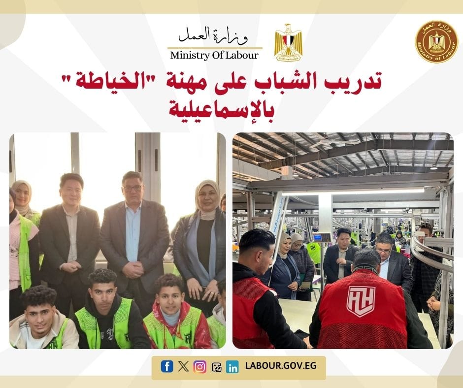 أطلق الدكتور أيمن شعبان، مدير مديرية العمل بالإسماعيلية، برنامجاً تدريبياً على مهنة الخياطة بصالات إنتاج شركة "هواهونج إيجيبت" بالمنطقة الحرة. يهدف البرنامج إلى تدريب الشباب والفتيات داخل بيئة العمل الفعلية لضمان تشغيلهم فور اجتياز التدريب، ضمن خطة الوزارة لخفض معدلات البطالة.