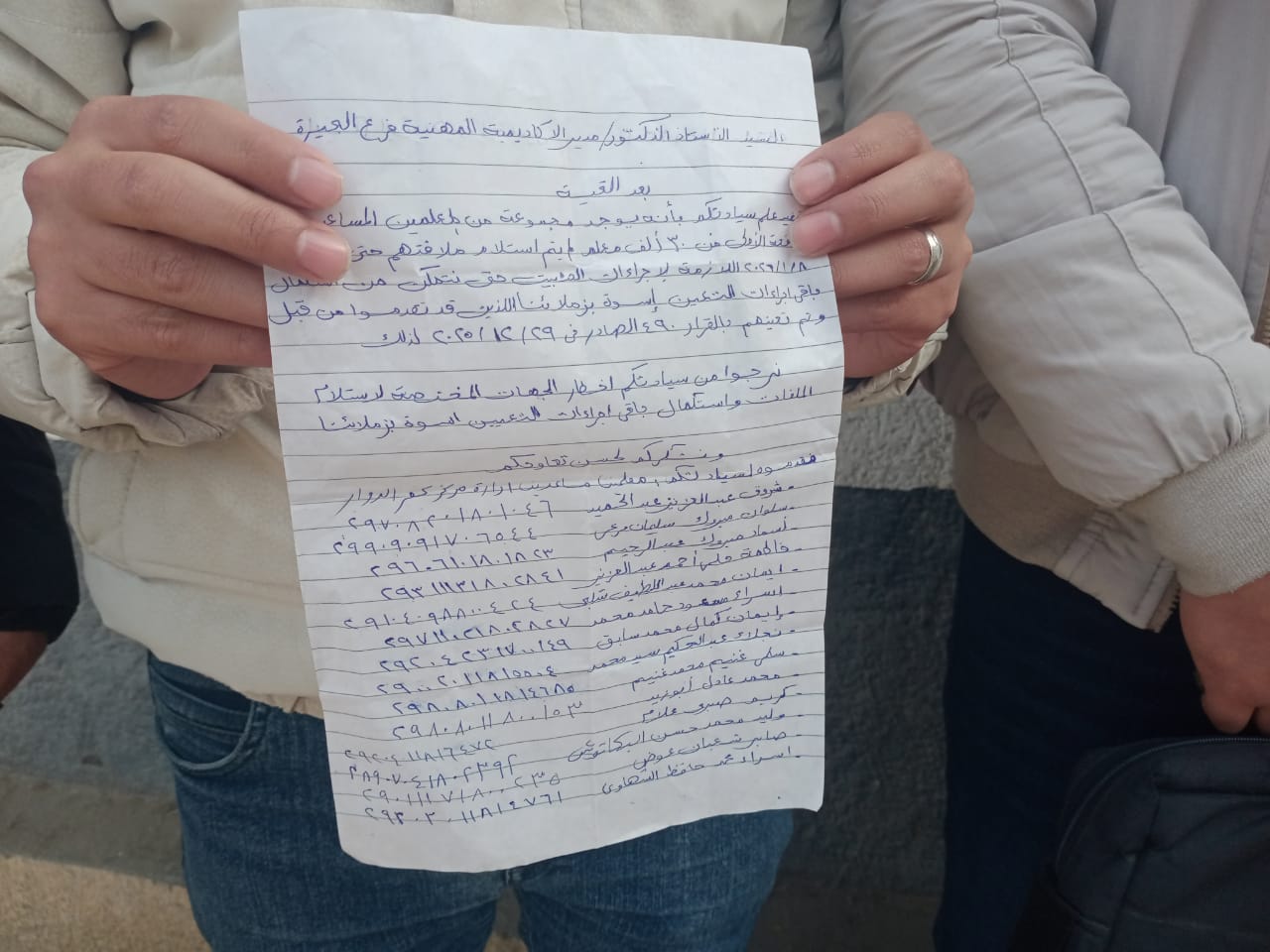وأكد المعلمون المتضررون أنهم استوفوا جميع الشروط القانونية، وقاموا بتجهيز وتقديم ملفاتهم في المواعيد المحددة، إلا أن أخطاء إدارية حالت دون إدراج أسمائهم، بعد رفض الموظف المختص استلام الأوراق، ومنحهم مواعيد متضاربة استمرت حتى انتهاء فترة التسليم الرسمية.