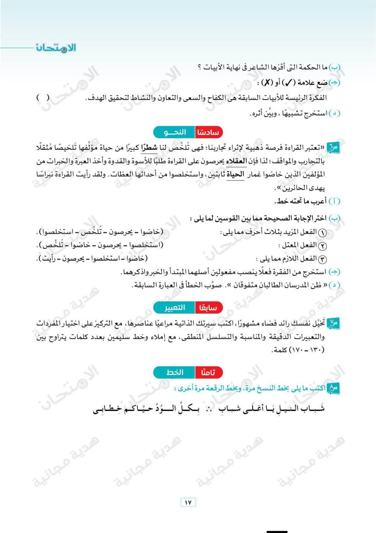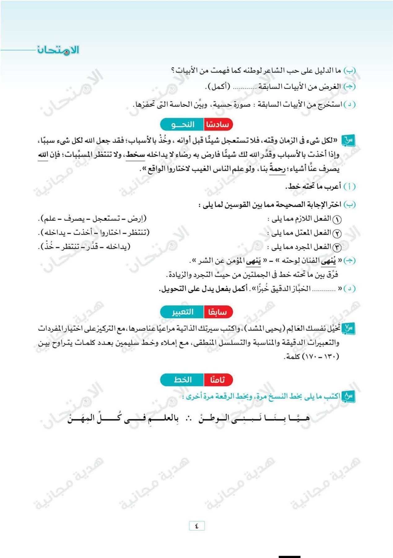 هذه النماذج تساعد الطالب على قياس مستواه، اكتشاف نقاط الضعف، والتدرب على أسئلة النحو، القراءة، النصوص، والتعبير بطريقة ذكية ومنظمة.